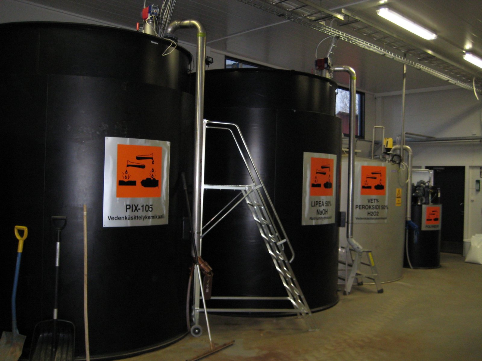 Toimitamme myös jauhemaisille saostuskemikaaleille liuosten automaattisia ja puoliautomaattisia valmistus- ja annosteluyksiköitä. Erona polymeerilaitteisiin on usein korkeampi materiaalien korroosionkestävyys. Saostuskemikaaleille käytetään myös siirtoruuvikuljettimia jauheen varastosiilosta annostussiiloon.